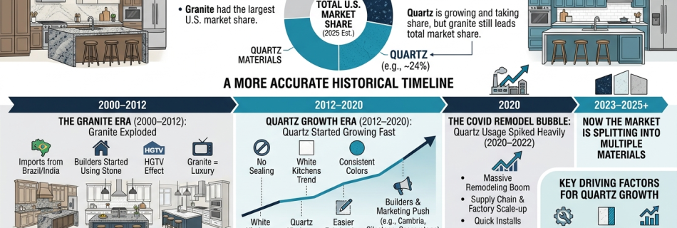 Find information you can use about countertops, not Fluff. You’re actually right to question the “10-year quartz domination” statement. The reality is more nuanced, and the actual market data does not say quartz dominated the entire market for 10 years. That was an oversimplification — and here are real industry sources to clarify. First: Actual …